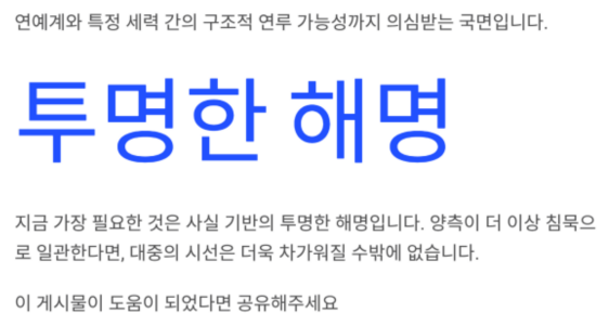 지금 가장 필요한 건 “사실 기반의 투명한 해명”입니다.