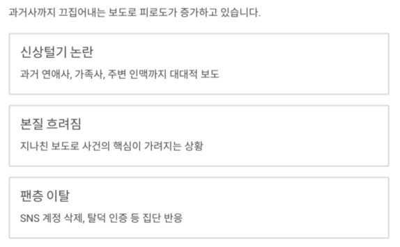 | 팬 대응 | 불신 증가, 탈덕 확산 |
