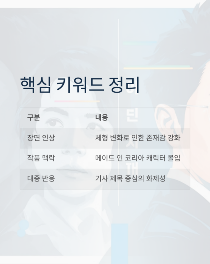 | 장면 인상 | 체형 변화로 인한 존재감 강화 |
