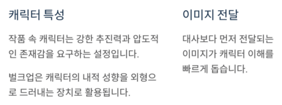 이런 맥락에서 벌크업은 캐릭터의 내적 성향을 외형으로 드러내는 장치로 활용됩니다.