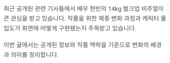 최근 공개된 관련 기사 제목들을 보면 배우 현빈의 14kg