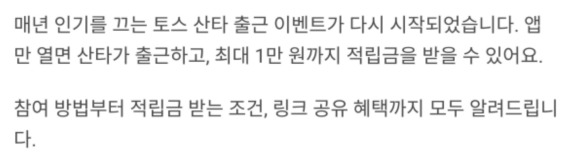 이번 글에서는 토스 산타 출근 이벤트 참여 방법, 적립금 받는 조건,