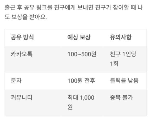 | 카카오톡 | 100~500원 | 친구 1인당 1회만 인정 |