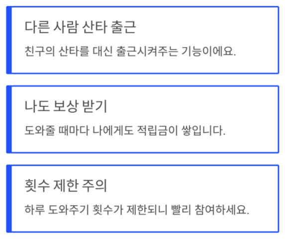 출근 도와주기 기능, 선물처럼 보상 쌓이기