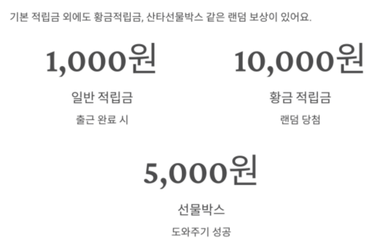| 일반 적립금 | 출근 완료 시 | 1,000원 |