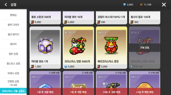 메이플 키우기의 대표적인 크리스마스 이벤트