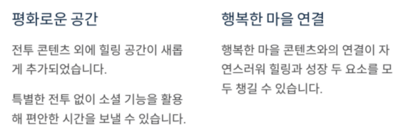 전투 콘텐츠 외에 힐링 공간도 마련되었습니다.