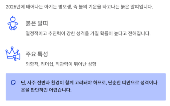 | 2026년 | 붉은 말띠 | 외향적, 리더십, 직관력 |