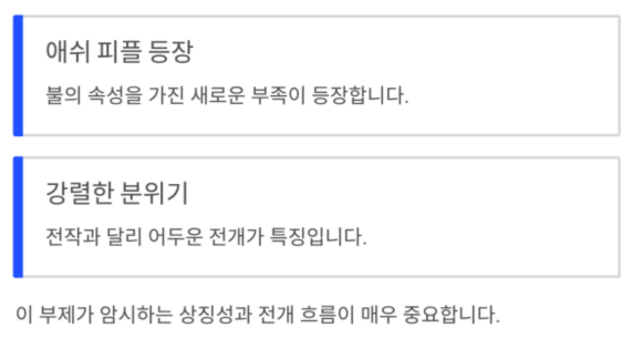 3편은 1편, 2편에서 이어지는 서사 중심의 작품입니다.