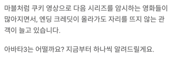 특히 마블 시리즈처럼 쿠키 영상으로 다음 시리즈를 암시하는 영화들이 많아지면서,