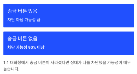 | 송금 버튼 있음 | 차단 아님 가능성 큼 |