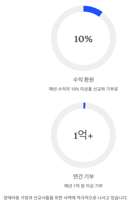 매년 수익의 10% 이상을 선교와 기부로 사용하고 있다고 밝혔습니다.
