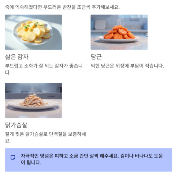 회복기 2단계: 부드러운 반찬 추가