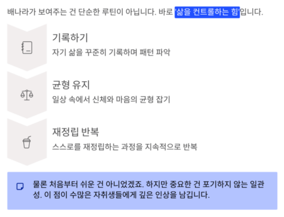 배나라가 보여주는 건 단순한 루틴이 아닙니다.