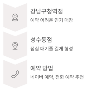예약 필수! 특히 강남점과 성수점 인기 집중