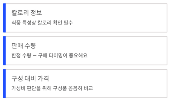 | 정보 탐색 | 가격, 구성 |