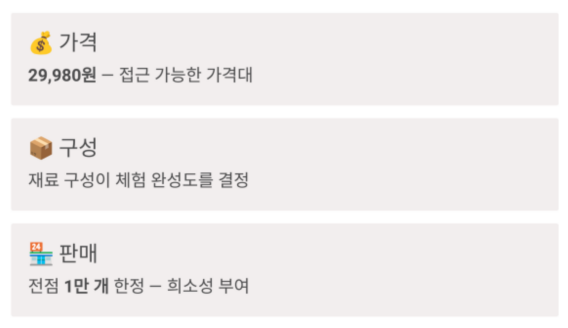 | 판매 방식 | 전점 1만개 | 희소성 |