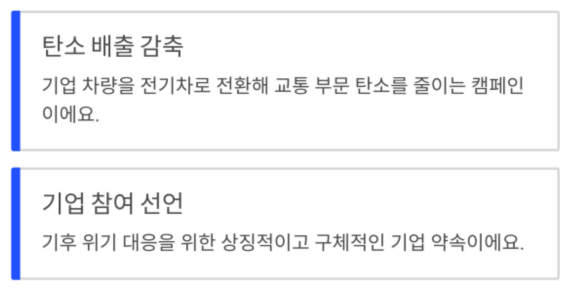 | 초점 | 전기차 전환 | 재생에너지 사용 |
