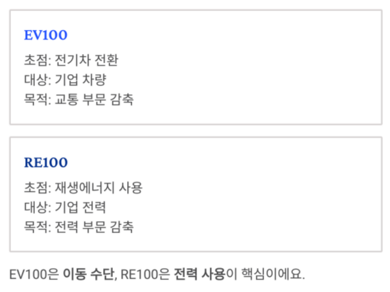 EV100과 RE100 차이도 함께 알아두면 좋아요