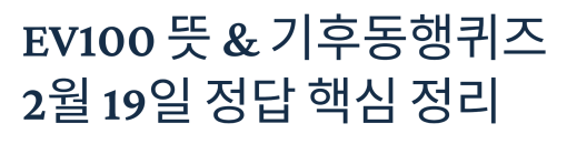 “EV100 뜻”, “기후동행퀴즈 2월 19일 정답”,