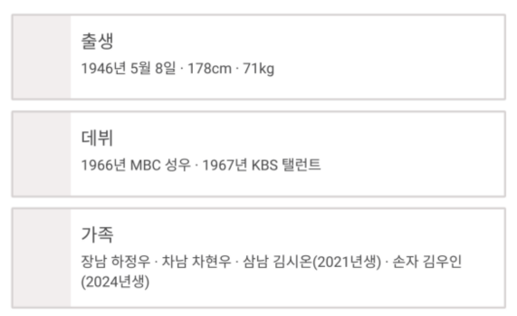 * 손자: 김우인 (2024년생, 현재 21개월 차)