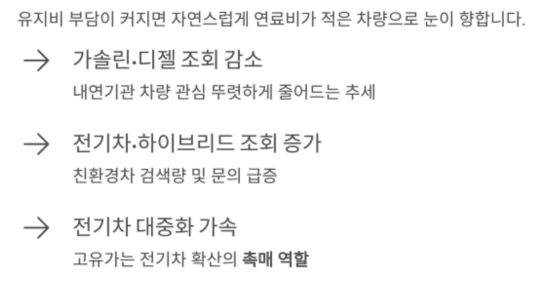 이 때문에 자연스럽게 연료비 부담이 적은 차량으로 관심이 이동하게 되죠.