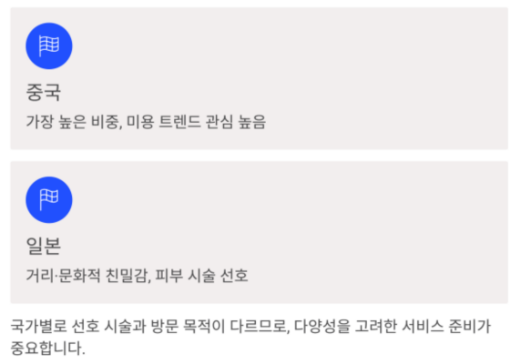 또한 국가별로 선호하는 시술이나 방문 목적이 다를 수 있기 때문에,