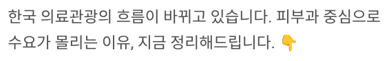 최근에는 피부과 중심 의료관광으로 이동하는 흐름이 보인다고 합니다.