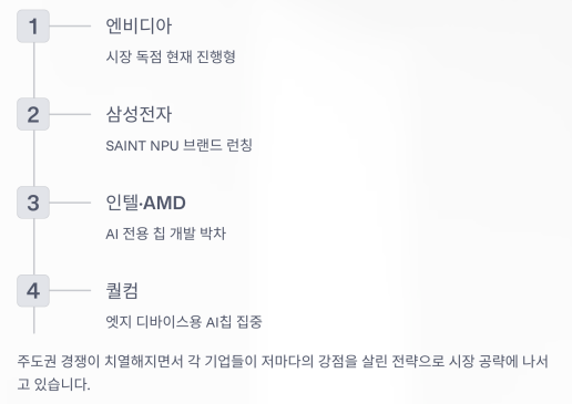 특히 삼성은 ‘SAINT’라는 자체 NPU 브랜드를 론칭하며 반격에 나섰고,