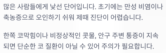 지속될 경우 단순한 코 질환이 아닌 부비동암일 수 있어 주의가 필요합니다.