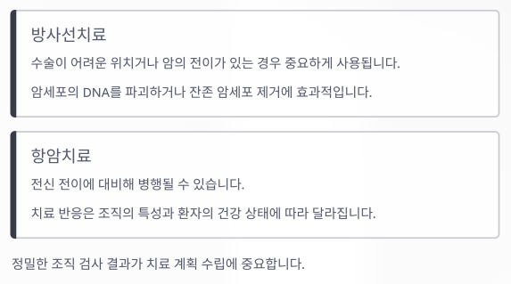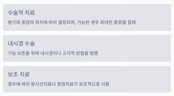 경우에 따라 방사선치료나 항암치료가 보조적으로 사용됩니다.