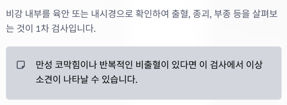 만성 코막힘이나 반복적인 비출혈이 있다면 이 검사에서 이상 소견이 나타날 수 있습니다.