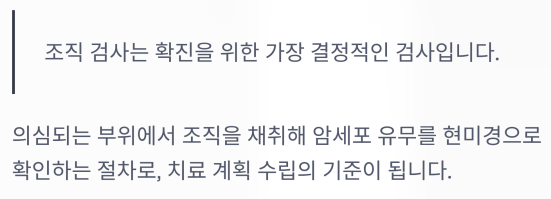 조직 검사는 확진을 위한 가장 결정적인 검사입니다.