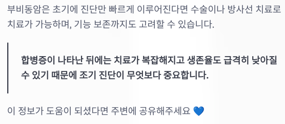 조기 발견이 어렵고 종양이 진행되면 치명적인 합병증으로 이어질 수 있습니다.