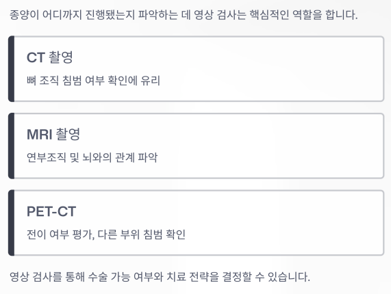영상 검사를 통해 수술 가능 여부와 치료 전략을 결정할 수 있습니다.