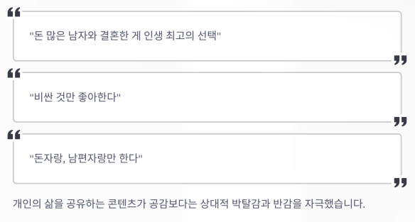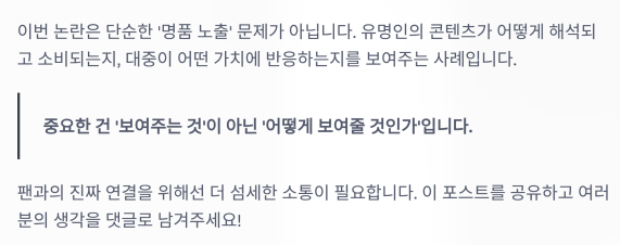 비판의 중심은 결국 "어디까지가 사생활 공유고, 어디부터가 과시인가?"에 있습니다.