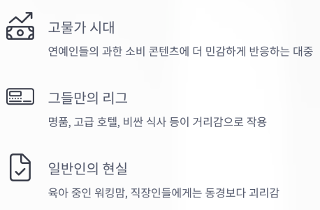 최근 고물가 시대와 맞물려, 대중은 연예인들의 '과한 소비 콘텐츠'에