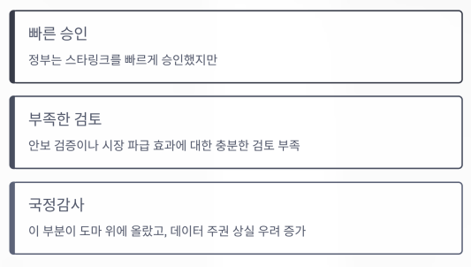 정부는 스타링크를 빠르게 승인했지만, 안보 검증이나 시장 파급 효과에 대한