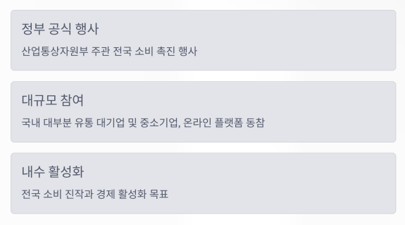 단순한 세일을 넘어 전국 소비 진작과 내수 활성화를 목표로 진행됩니다.