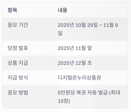 | 응모 기간 | 2025년 10월 29일 ~ 11월 9일 |