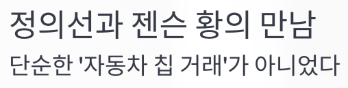 현대차와 엔비디아가 손잡은 이유는? AI 시대 '자율주행 주도권' 전쟁의 서막현대자동차 정의선 회장과 엔비디아 CEO 젠슨 황의 만남이단순한 예우 차원의 회동이 아니었음이 드러났습니다.자율주행 시대, 차량은 이제 바퀴 달린 스마트폰이 되며 핵심은 '소프트웨어'입니다.이미 수백만 대의 차량 데이터를 보유한 테슬라가 압도적인 1위를 달리는 가운데,현대차는 이를 따라잡기 위한 승부수를 던졌습니다.그 해답은 '엔비디아 드라이브'라는 올인원 AI 솔루션.이제부터 현대차와 엔비디아가 함께 그리는 거대한 그림 속으로 들어가 봅니다.테슬라의 초격차, 현대차의 절박한 선택현대차는 현재 소프트웨어와 자율주행 기술에서 테슬라와 상당한 격차를 보이고 있습니다.특히 테슬라는 전 세계 500만 대 이상의 실차 데이터를 기반으로 ..