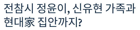 정윤이, 전참시 출연 이후 누리꾼들의 궁금증 폭발MBC 예능 '전지적 참견 시점'에출연한 정윤이 씨가 화제를 모으고 있습니다.특히 그녀의 가족관계, 현대차 그룹과의 연관성,그리고 신유현 선수의 어머니라는 점까지알려지며 뜨거운 관심을 받고 있는데요.기사 제목만으로도 이미 수많은 네티즌들의 추측과 호기심을자극하고 있는 정윤이 씨의 스토리,지금부터 차근차근 짚어보겠습니다.전참시 출연으로 화제의 중심에 선 정윤이방송 한 번에 분위기가 바뀌었습니다.정윤이 씨가 전참시에 등장하자마자 각종포털 실시간 검색어에 이름이 오르며 주목을 받았죠.그녀의 등장 이후 ‘정의선 누나’, ‘신유현 엄마’,‘현대家 딸’ 등 다양한 키워드가 넘쳐나기 시작했고요.현대家와의 관계? 확인되지 않은 정보들가장 이목을 끈 건 그녀가 현대차 그룹..
