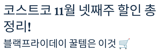 코스트코 이번 주 세일 뭐 있어요? 2025년 11월 4주 차 할인 품목 정리11월 넷째 주, 드디어 많은 소비자들이 기다리던‘코스트코 블랙프라이데이’ 시즌이 시작됐습니다.매년 11월 마지막 주는 코스트코에서 가장 다양한 할인 품목이 쏟아지는 시기로,이번 주 역시 식품부터 가전, 생필품까지 대규모 할인 소식이 쏟아지고 있는데요.전국 양재점, 상봉점, 신상 입점 정보까지 모두 모아봤습니다.블랙프라이데이와 맞물린 대형 할인 시작!2025년 11월 24일부터 30일까지 진행되는 넷째 주할인은 블랙프라이데이 특가와 함께 시작되었습니다.일부 품목은 한정 수량으로 운영되어 빠른 소진이 예상되며,멤버십 회원 우선 적용 등 조건도 있으니 방문 전 사전 체크가 필수입니다.추천템: 놓치면 아쉬운 세일 품목 TOP가전, 주..
