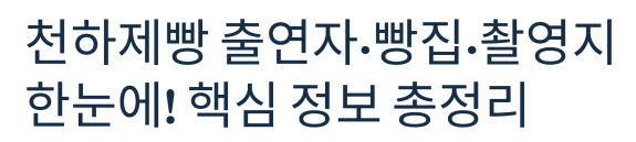 천하제빵 출연자·빵집·촬영지 한눈에! 핵심 정보 총정리