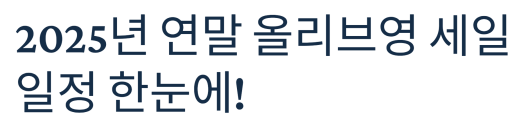 11월과 12월, 올리브영 세일 시기를 놓치지 마세요연말 시즌은 올리브영 세일이 가장 집중되는 시기입니다.블랙프라이데이부터 윈터 빅세일까지 이어지는 대규모 할인 이벤트는평소보다 더 알뜰하게 쇼핑할 수 있는 기회예요.2025년 기준으로 올리브영의 11월 세일과 12월 세일 일정이 어떻게 구성되어 있는지,각 세일별 특징과 혜택을 한눈에 정리해 드릴게요.미리 일정을 파악하면 필요한 제품을 좀 더 효율적으로 구매할 수 있습니다.11월 블랙프라이데이 일정과 특징올리브영 블랙프라이데이는 2025년 기준으로 11월 1일부터 7일까지 진행됐습니다.다양한 품목이 대규모 할인 대상에 포함됐으며,기본 할인가에 더해 일주일 특가와 하루 특가 등 다채로운 방식으로 진행됐어요.사전 쿠폰은 10월 말부터 발급되어 빠르게 품절되었고..
